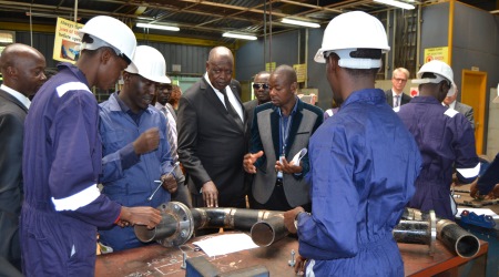 Pipe welding refine trainees' metal arc welding skills and teach them to weld pipes in horizontal, vertical and horizontal-fixed positions. Classroom discussions focus on pipe layout and the decision-making steps welders move through before choosing which techniques to use on a complex pipe. trainees then weld and fit pipes in the workshop.